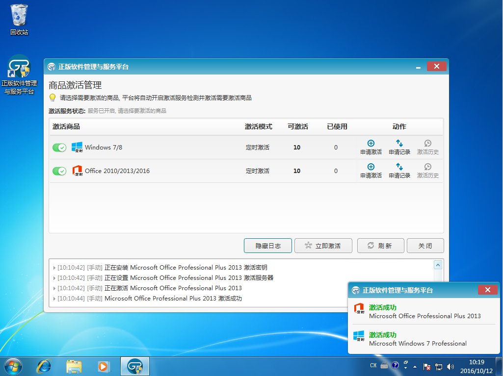 至此,Windows和Office的激活已完成,可以选择卸载或继续保留此激活客户端。