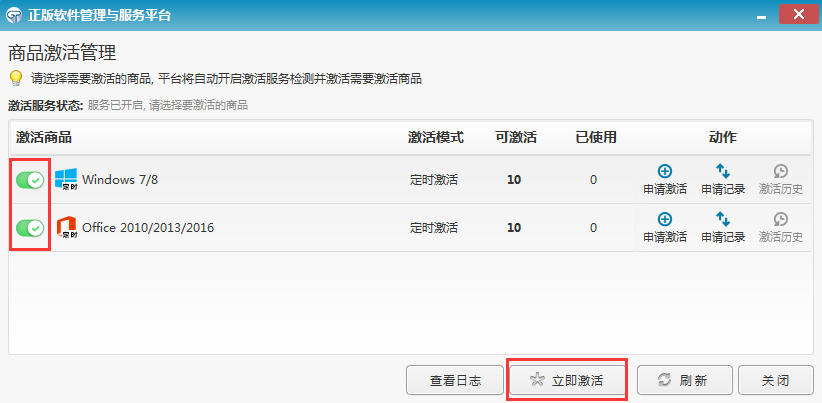 2) 点击左边的选项按钮,勾选需要激活的产品,然后点击“立即激活”