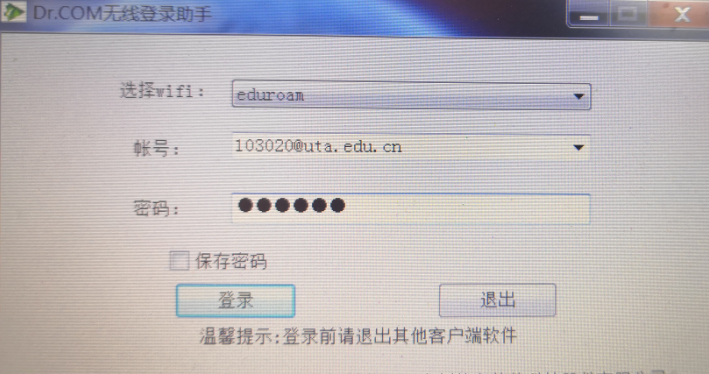 登录用户名:校园网账号+“@uta.edu.cn”(例如:103020@uta.edu.cn)