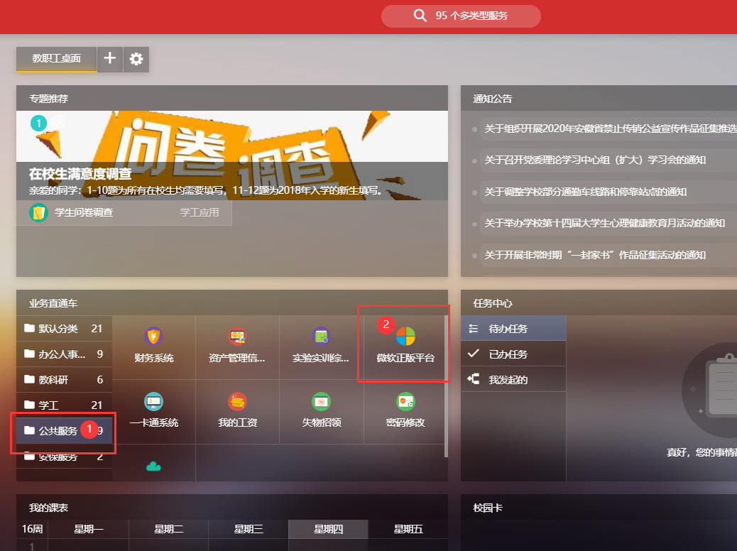 校内登录智慧校园平台(ehall.uta.edu.cn),在业务直通车中选择公共服务,点击微软正版平台,进入下载平台;
