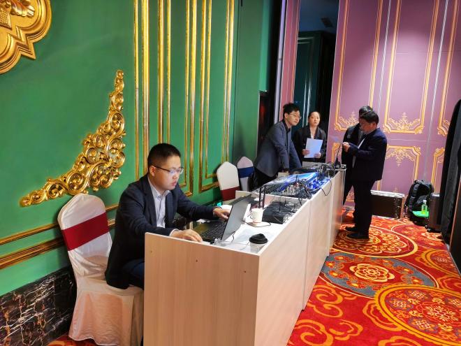 会前中心对会议所需的各种设备多次进行检查和调试,确保LED大屏、音响、麦克风等设备运行正常,声音流畅,画面清晰。与科大讯飞技术人员多次沟通、调试会场同声传译需求,确保翻译内容准确展示
