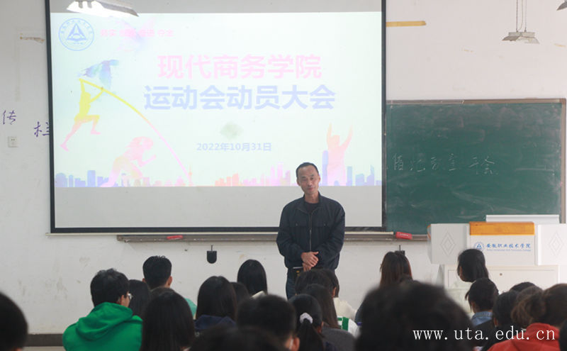 2022年10月31日中午,现代商务学院召开第十九届田径运动会动员大会,对本届运动会各项事宜进行了周密安排,学院党总支负责人许兴旺、副院长杜淑琳和部分学生干部参加了本次动员大会。