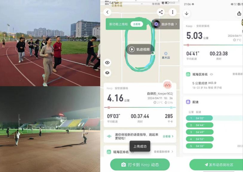 随后,同学们移步到操场,这里将是他们锻炼身体、培养意志的战场。去积极践行“在校日行八千步,为国服务五十年,健康快乐一百岁”的健康理念,同学们分成若干小组,采用了Keep打卡的形式,便开始他们的健身之旅。这次晚自习活动不仅仅是一次简单的体育锻炼,它更是一次心灵的洗礼。在运动中,同学们学会了如何面对挑战,如何在困难面前不屈不挠。他们的身体得到锻炼,意志也变得更加坚强。这种通过体育活动培养出的坚韧和毅力,将对他们的学习和未来的生活产生深远的影响。
