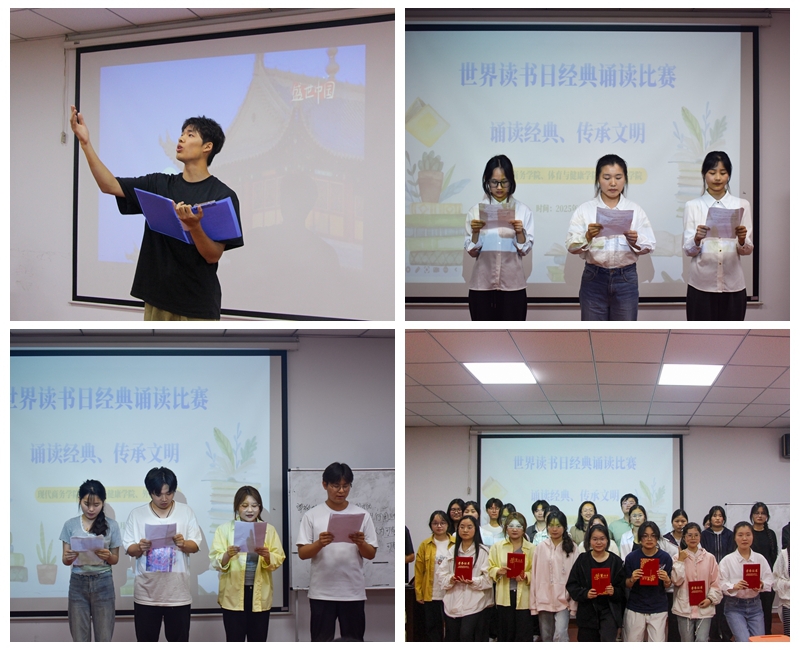 为迎接第30个世界读书日,弘扬经典文化,营造书香校园氛围,4月21日,由现代商务学院主办、体育健康学院与外国语学院协办的“诵读经典·传承文明”世界读书日经典朗诵比赛在至勤楼404报告厅圆满落幕。师生齐聚一堂,共同感受文字的力量与声音的魅力。