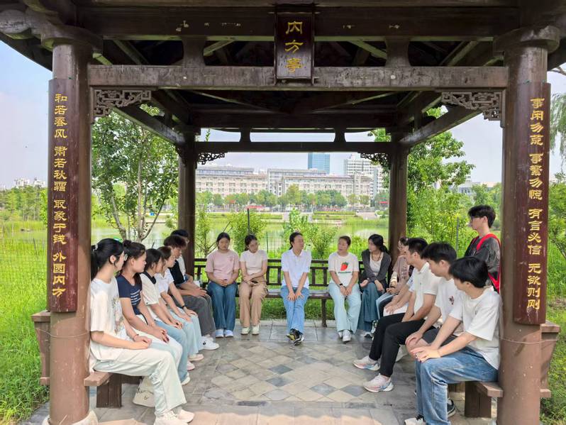 在第二天的迎新队伍中,首批报到的全媒体电商运营专业新生也积极加入志愿服务行列。新同学们在互助中一起熟悉了学校的教学楼、图书馆、寝室和食堂,一起看到了清水湖中的小天鹅,一起感受校园里一草一木所蕴含的文化气息。清水湖畔,新生志愿者们围坐一起,在内方亭内交流讨论了他们对安职大的第一印象,大家都提到了校园大、环境美,风景好。老师在肯定他们的同时也告诉大家,我们的校园之美不仅体现在环境,更体现在我们的文化,我们的一道一路,一楼一宇,一桥一亭,一山一湖都有其深刻的文化内涵,希望大家在今后的学习生活中感悟校园文化,追求卓越、奋发有为。