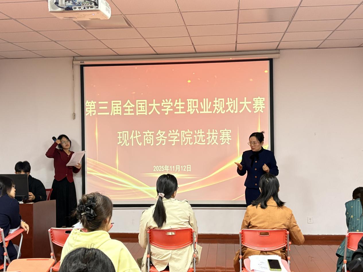 为引导学生科学规划职业生涯,提升就业竞争力,20251112日,现代商务学院第三届全国大学生职业发展规划大赛院级现场赛在至勤楼404教室成功举办。从网评中中脱颖而出的24名选手齐聚一堂,展开了精彩的现场角逐。