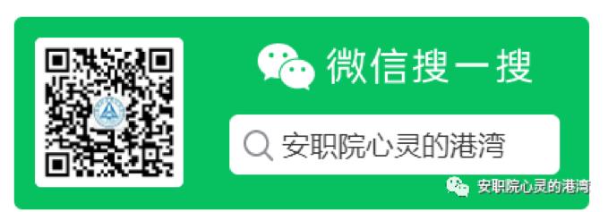 同学们可关注心灵的港湾微信公众号:扫描下面二维码或搜索微信号(安职院心灵的港湾)。点击对话框右下方的“联系我们”,再点击“预约方式和时间”,阅读、了解预约相关事项,然后点击“进行预约”,选定可用的预约时间段,并备注自己的QQ号等相关真实信息。在预约时间段可选文字、语音或视频方式进行咨询。每次咨询时间50分钟左右。