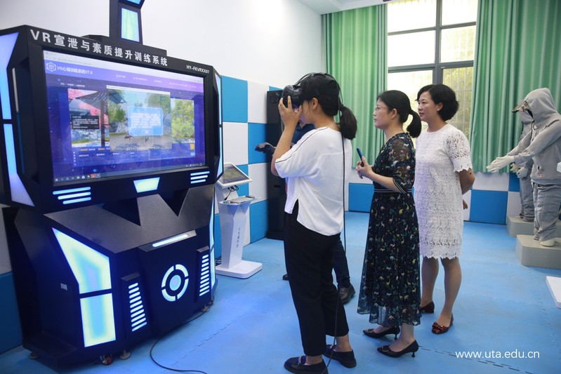 杨珍向来宾介绍了我校大学生心理健康教育中心整体建设方案。实地参观过程中,双方重点围绕青春宣讲室、情绪宣泄室、团体活动室等使用情况进行深入交流。