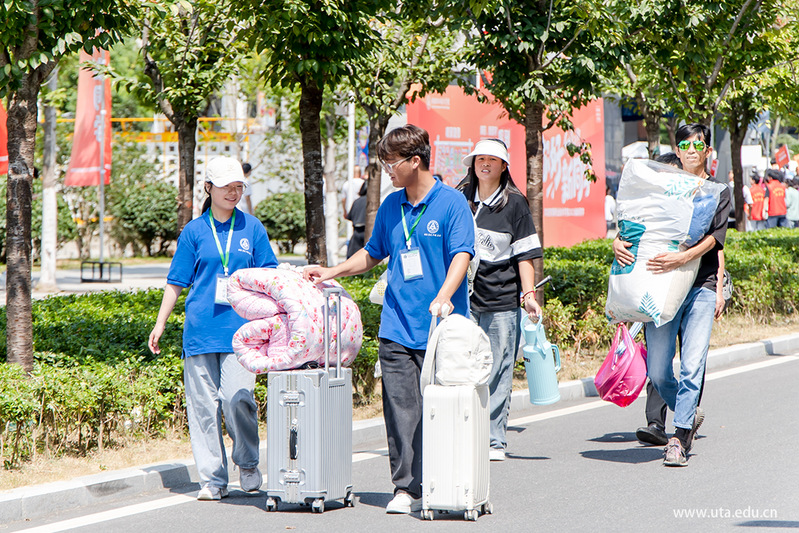 报到现场,学生处、团委、网络信息中心、后勤管理处、保卫处等部门周密部署、统筹安排;各二级学院精心布置场地,各具特色、新意十足;近千名志愿者按照“一对一,点对点”的方式,为新生提供咨询引导、搬运行李等服务,为新生报到保驾护航。