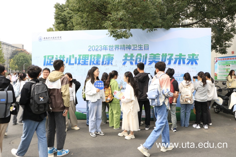 本次活动在西区食堂门口设立宣传点,心语协会成员为师生发放宣传材料,普及心理知识,传播健康理念,通过心理游戏互动、在展板上签名等方式吸引广大师生驻足参与。同时,活动通过微信公众号“安职院心灵的港湾”推出由北京大学第六医院等单位联合出品的十集“精神卫生知识科普”系列动画短片。