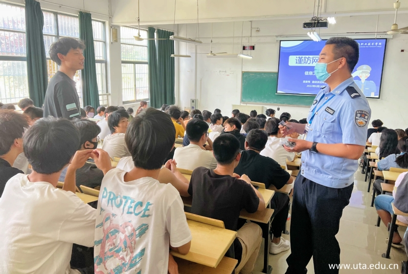 首先,袁成伟向同学们介绍了当前电信网络诈骗犯罪的特点、常见诈骗方法,引导同学们不要被假象所迷惑,不贪图小便宜,不为盈利骗局所诱惑而上当受骗,并通过发放宣传资料、现场互动问答等多种方式提醒同学们遇到各种骗局做到“不理睬、不转账、不轻信、不汇款”。同时,针对非法买卖、出租“两卡”和网络账号、支付账号的违法行为进一步开展警示教育,提醒大家维护个人信息安全,提高自我保护能力,自觉抵制违法犯罪。最后,袁成伟积极动员大家下载安装国家反诈中心APP,不断提高防骗意识和识骗能力。