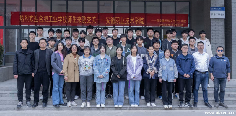 3月8日下午,合肥工业学校招生就业办主任张克难、信息学部主任聊宗龙等师生一行到amjs澳金沙门线路首页奇安信网络安全产业学院参观交流,计算机与信息技术学院副院长刘晓川、网络技术教研室副主任胡春雷、网络安全产业学院运营总监方康等陪同参观。