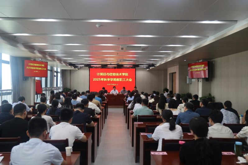 8月28日,计算机与信息技术学院召开2025年秋季学期全体教职工大会。校领导张智清出席会议,学院党政负责人及全体教职工参加会议。会议由周玉强主持。
