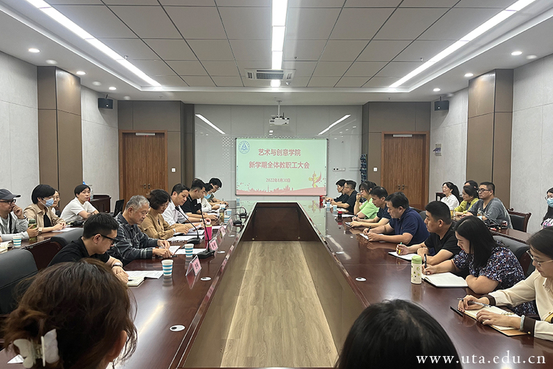 8月30日下午,艺术与创意学院在体育馆四楼会议室召开2022年秋季新学期全体教职工大会。学院党委委员、纪委书记李荣富到会指导。艺术与创意学院党政负责人杨哲、吕慧,党总支组织员张栩及全体教职工参加会议。会议由杨哲主持。
