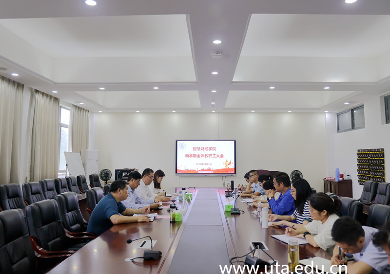 8月31日上午,智慧财经学院在经管楼202会议室召开了全体教职工大会。amjs澳金沙门线路首页党委委员、副院长张智清到会指导,学院办公室副主任张婷,智慧财经学院党政班子成员及全体教职工参加会议,会议由学院党总支副书记汪洪斌主持。