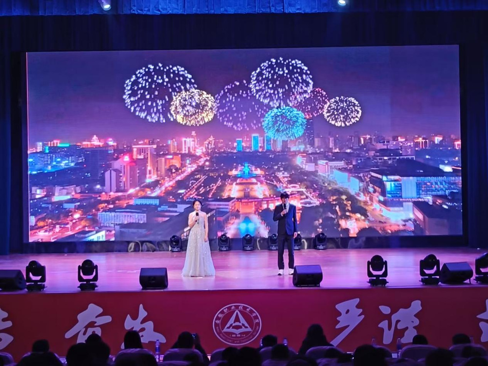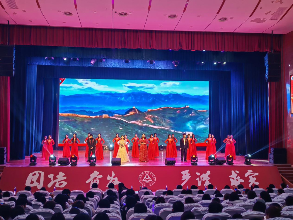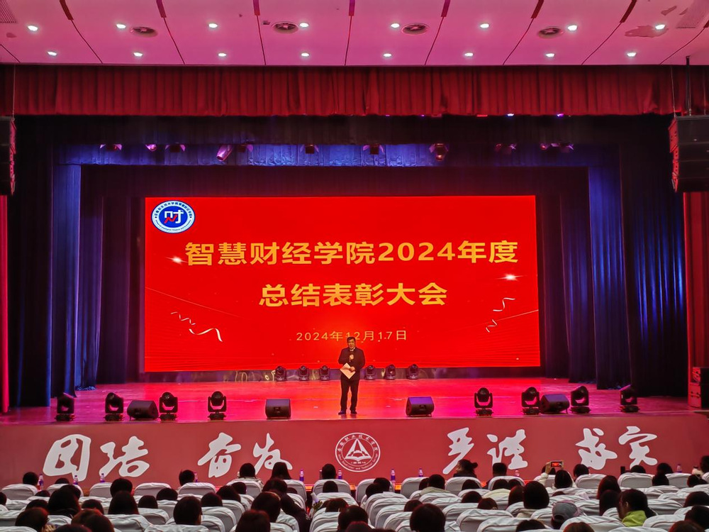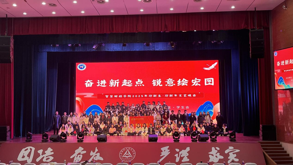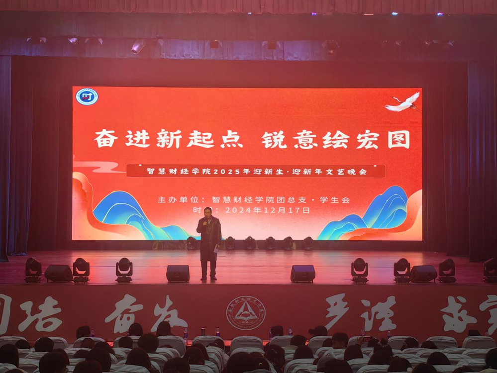 元日迎新瑞气盈,桃符换旧岁华更。为进一步营造校园文化氛围,推进以文化人、以美育人,智慧财经学院于2024年12月17日晚在至立会堂举办“奋进新起点 锐意绘宏图”迎新生·迎新年文艺晚会。学院党政负责人、教师代表及全体在校学生欢聚一堂,共同观看演出。