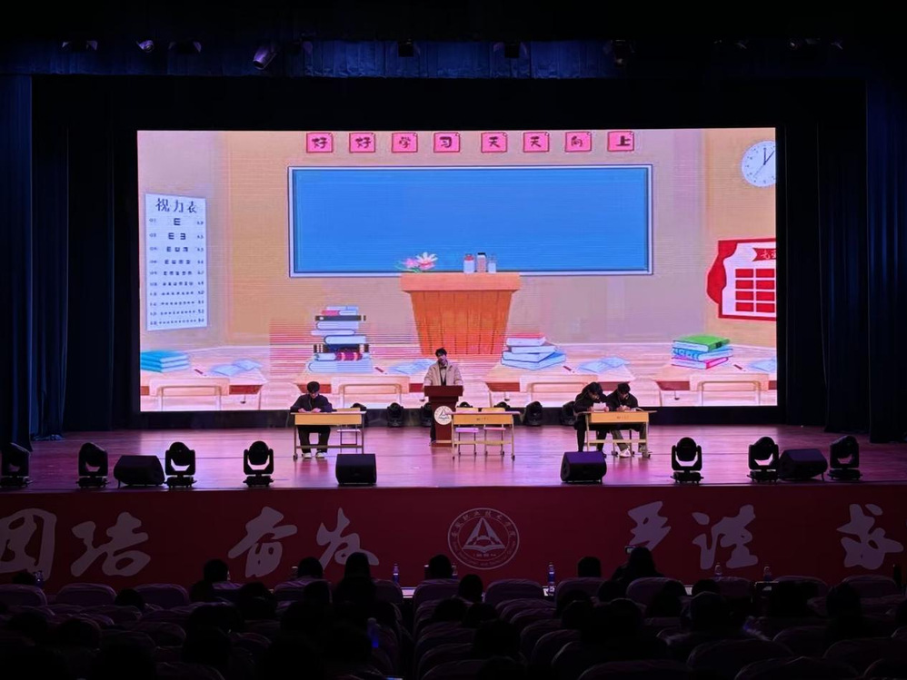 在互动环节,校园文化知识抢答充分调动了现场同学的参与热情,大家踊跃举手,积极抢答,将晚会氛围推向了一个小高潮。随后,学院党总支负责人汪洪斌上台致辞,向学院全体师生致以新年的美好祝愿,寄语全院师生共同努力书写属于智慧财经人的辉煌篇章,迎接更加灿烂夺目的2025年。