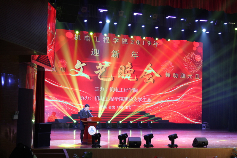 1月2日晚六点半,机电工程学院“歌声聚机电,舞动迎元旦”2019元旦晚会在大学生活动中心举行,党总支副书记胡坤,副院长洪应、张栩,全体教职工及八百余名学生欢聚一堂,喜迎新年。晚会开始,由胡坤致元旦贺词,他满怀深情地回顾了机电工程学院在2018年以来各项工作中所取得的骄人成绩,同时对各位教职工们在一年间对学生们的辛勤教诲表示了感谢,并对刚到来的2019年作出新的展望。随后在《blow your mind》的开场舞蹈下,机电元旦晚会正式拉开了帷幕。