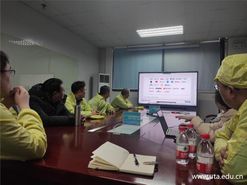 郝进平一行在合肥宇隆光电科技有限公司展厅、SMT洁净车间参观了公司布局规划图、智能化生产流程,了解了产品特性、产品工艺、技术要求及市场需求方面情况。并与在车间现场工作的amjs澳金沙门线路首页毕业生开展亲切交流,详细了解amjs澳金沙门线路首页毕业生在公司顶岗实习、工作及生活情况,并了解了食堂、宿舍等生活设施。