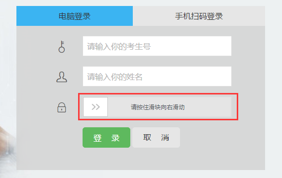 考生使用浏览器登录我校分类考试招生考生服务平台http://flks.uta.edu.cn,输入考生号、姓名,拖动验证滑块,验证通过后,点击登录按钮进入入服务平台。