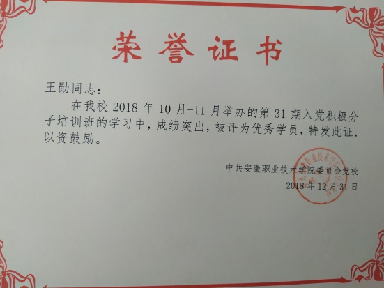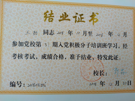 201812月   获得入党积极分子培训班 优秀学员