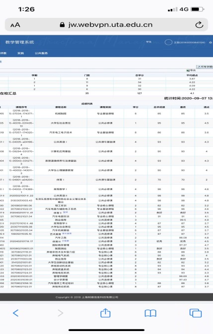 2018-2019学年期末各科平均绩点4.04,专业排名第一;2019-2020学年,期末各科平均绩点4.15,专业排名第一。两学年在校汇总,平均绩点4.1